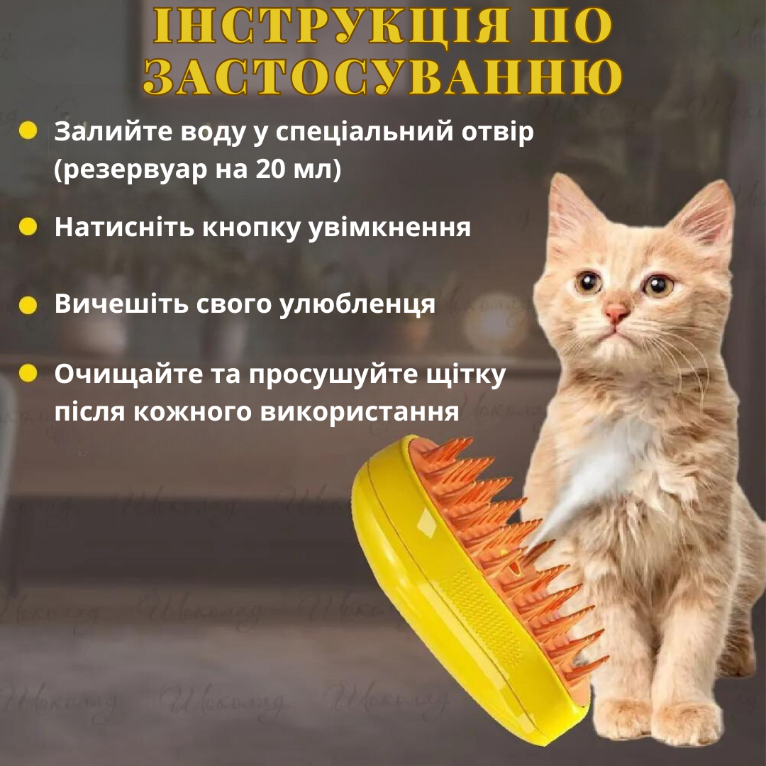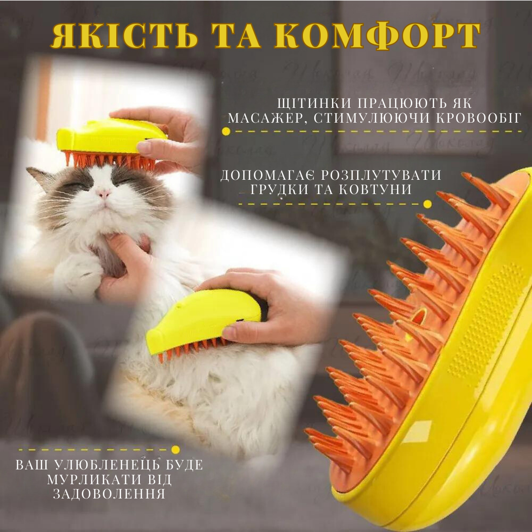 Особливість нашої моделі – електричний відпарювач, який забезпечує ефективний догляд за вашими улюбленцями. Завдяки впливу води і пари кожне волосся насичується вологою і стає гладким і зволоженим, а ще це забезпечує освіжаючий ефект і допомагає розплутувати грудки і ковтуни. Особливо це актуально для довгошерстих порід собак (такі як шелті, йорки, стефан і померанські шпіци, коргі, бордер-коллі, пуделі, ньюфаундленди, пікінеси,) і кішок (такі як британці, бобтейли, сибірські, мейн-куни, персид). Підійде щітка-гребінець і для вичісування короткошерстих порід: йоркширських тер’єрів, той тер’єра, болонок та вівчарок, джек рассел, китайської хохлатої).